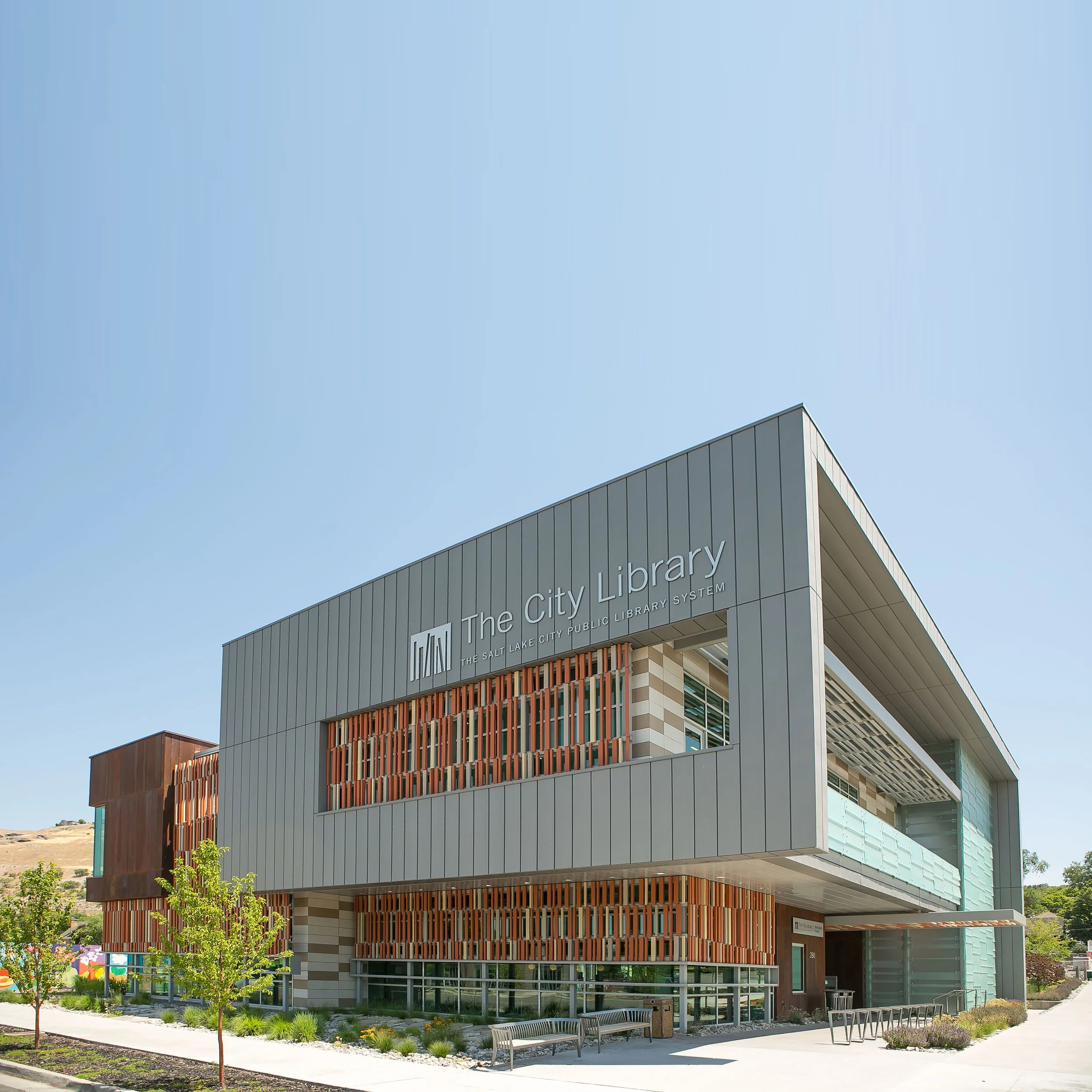 Davis County’s headquarters library completes the Davis County civic campus in Farmington, Utah. The 22,000 square foot library houses an intensive technical services and processing wing that serves all branches in the Davis County Library system. In addition to the Collection, spaces include public meeting rooms, conference and study rooms, dedicated Young Adult area, Children’s Library and a Special Collections room. An inviting entry plaza is sized for public events and activities, while a private Children’s Courtyard is scaled for a more intimate setting.