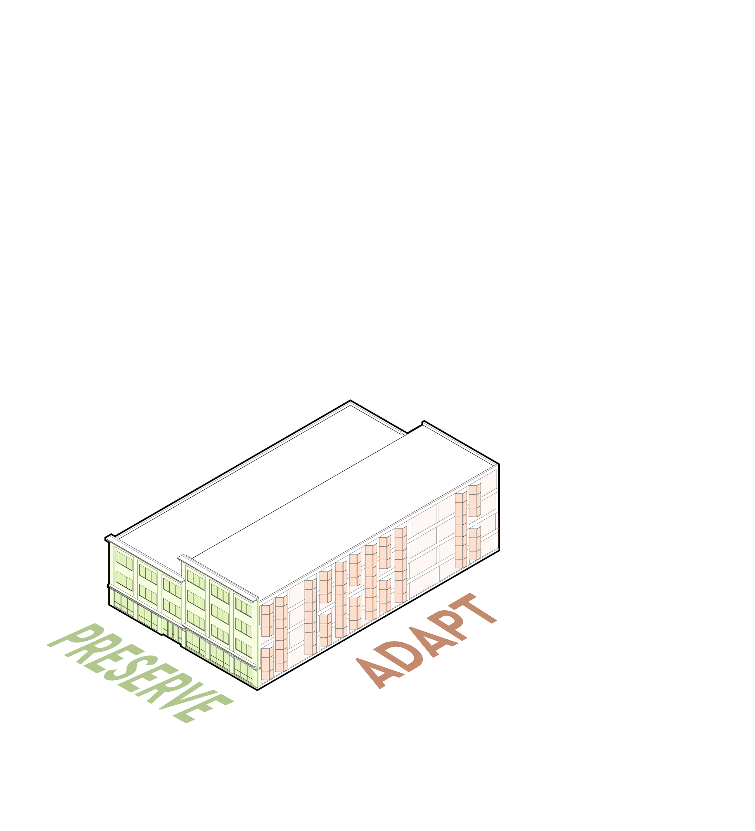 Central to the design of Paragon Station is a desire to embrace an existing historical character while introducing a sensitive modern design solution. Formerly known as the Westgate Business Center, the existing building has gone through a number of rehabilitation efforts over its lifespan. Cues from the successes and failures of those efforts were taken for the design of Paragon Station.